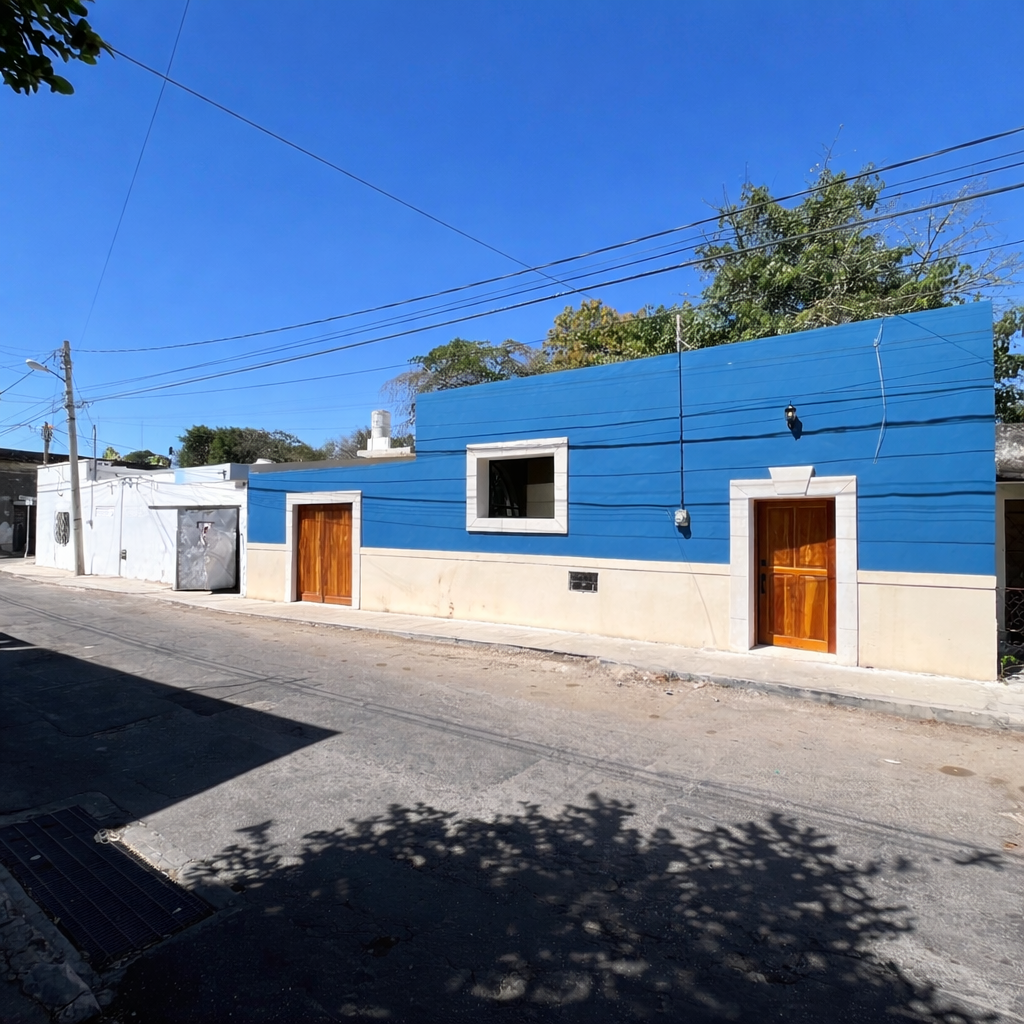 Propiedad de una sola planta ubicada en una tranquila calle del Centro de Mérida, con fachada tradicional y detalles en madera que conservan el encanto de la zona. Cuenta con una distribución funcional, buena ventilación e iluminación natural.